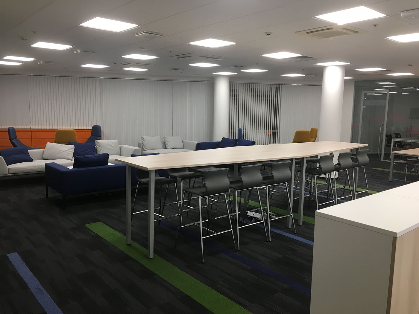 A fast-track project for this global supplier of credit card processing equipment and services meant that Sunbury Heights was tasked with moving swiftly ahead with a design and build appointment and push them to complete in the quickest possible time. Challenged by an idiosyncratic landlord and reporting to the London TSYS headquarters, Sunbury Heights finished the project successfully, meeting the client's timescale requirements, which achieving a high degree of cost control and delivering a great quality office.